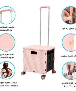 المادة: بلاستيك بولي بروبلين + مقبض ألمنيوم + عجلات مطاط مرن